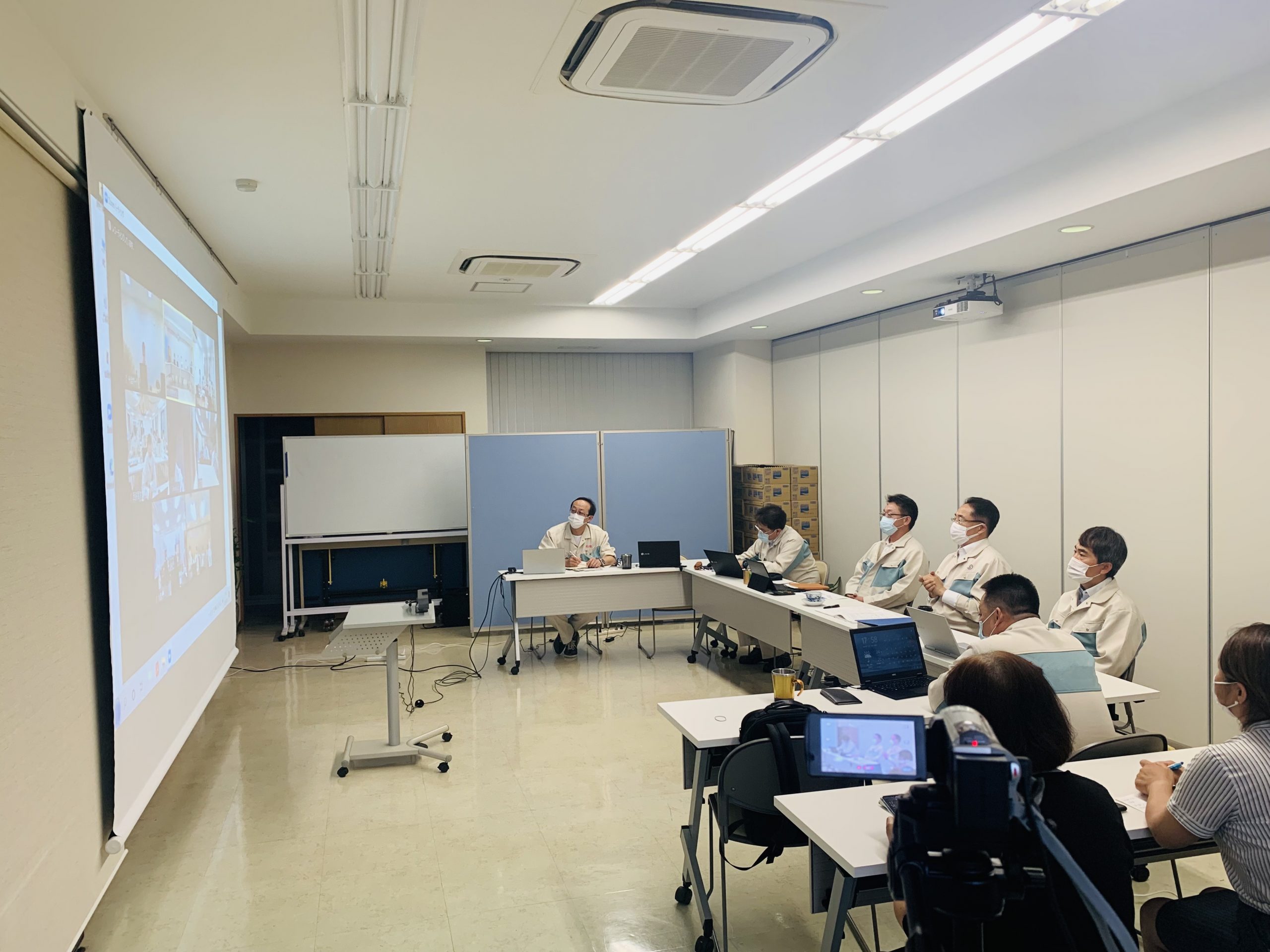 また、社長からは、長引く不要不急の外出自粛で仲間と顔を合わせ語り合う機会も減り、ストレスや我慢を強いられる生活が続いていますが、これからの数カ月でさらに気を引き締めて感染予防対策を徹底することが大切であること、また今年の残り半年が会社にとって正念場であると意識し、一丸となって励んでいこうとの言葉を頂き、有意義な報告会を終えました。